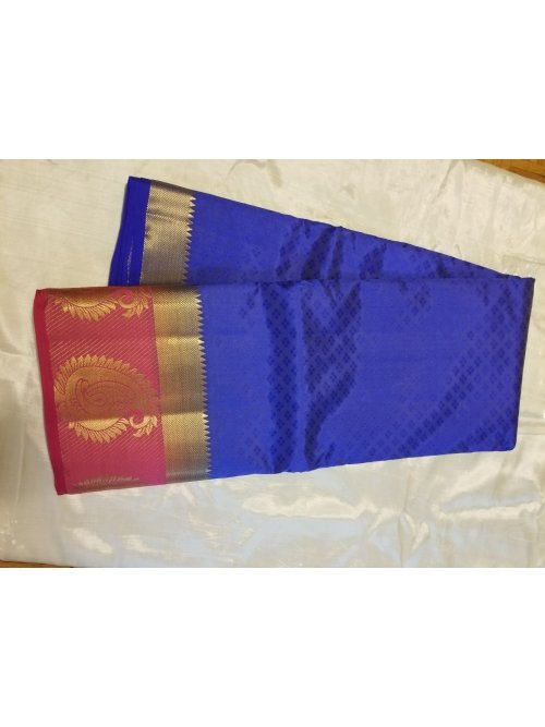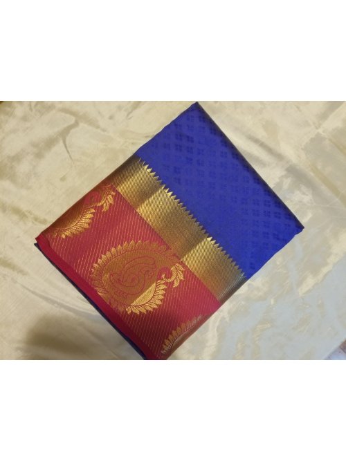 KANCHIPURAM EMBOSS MANGO PEACOCK CONTRAST SAREE