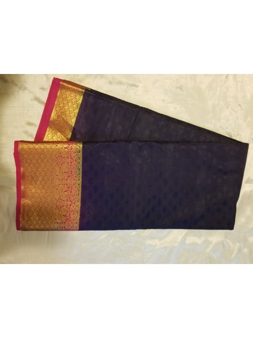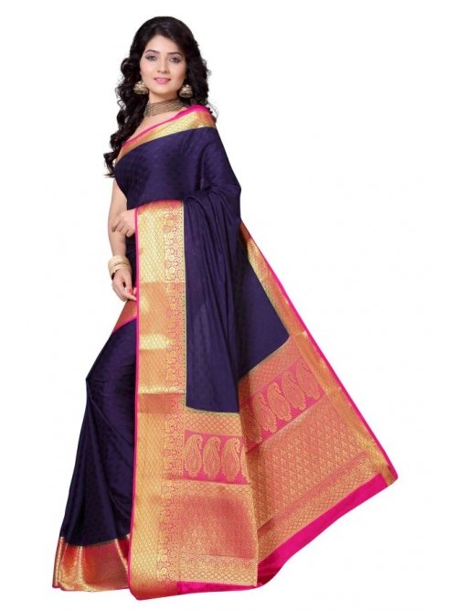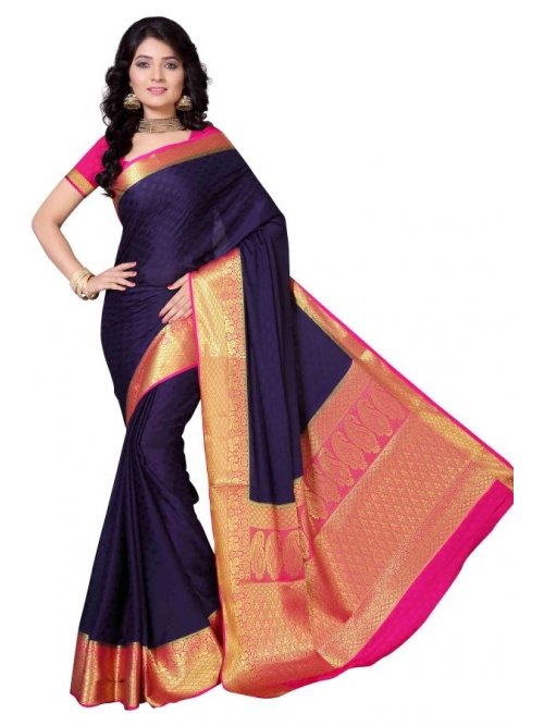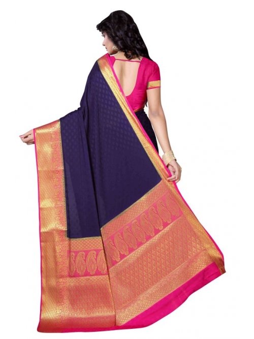 Mysore Crepe Emboss Contrast Richpallu Saree - Neavy Blue X Rani