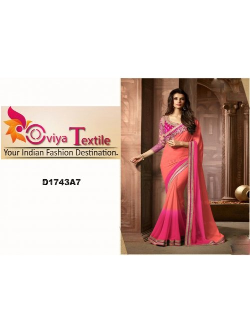 Silver Screen Party Wear Saree Heavy Blouse - PINKISH ORANGE
