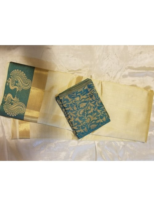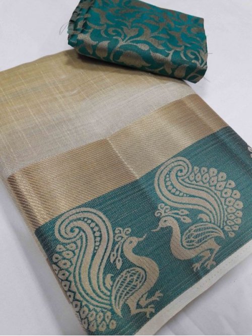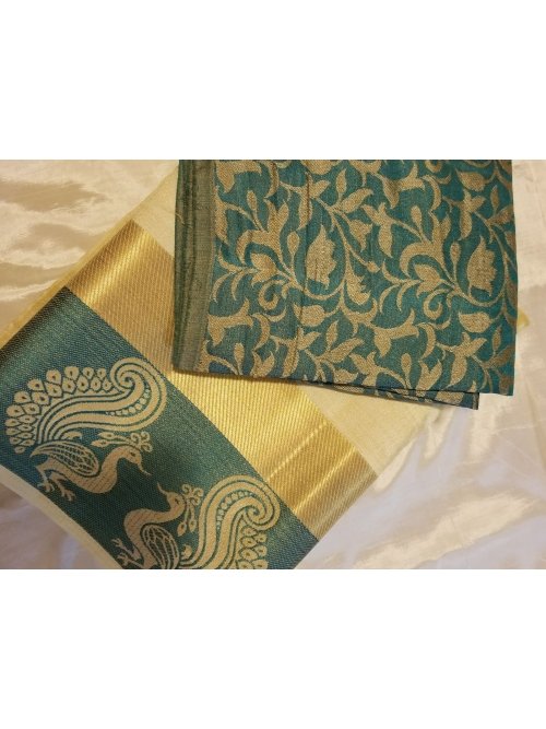 Tussar Silk Sartin Peacock Border Chitpallu Saree(With Extra Blouse)