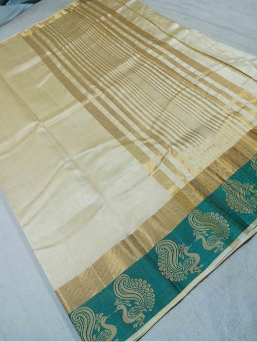TUSSAR SILK SARTIN PEACOCK BORDER CHITPALLU SAREE(WITH EXTRA BLOUSE)